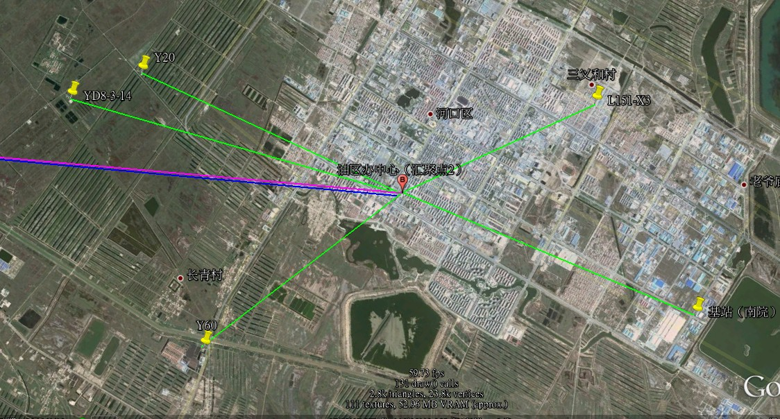 本次方案將整體區(qū)域劃分為5大區(qū)域,油井監(jiān)控70點(diǎn)位計(jì)算。將原有油區(qū)辦中心基站,網(wǎng)橋在部分點(diǎn)區(qū)域補(bǔ)點(diǎn)使用。另外每個(gè)區(qū)域采用3臺(tái)90度扇區(qū)無(wú)線網(wǎng)橋組合成360°廣角覆蓋。在每區(qū)域的鏈路匯聚至該區(qū)域匯聚點(diǎn)后傳至新中心點(diǎn)。區(qū)域內(nèi)的每接入點(diǎn)采用智能基站設(shè)備傳輸至匯聚點(diǎn),匯聚點(diǎn)至中心點(diǎn)采用千兆設(shè)備傳輸。具體如下如所示: