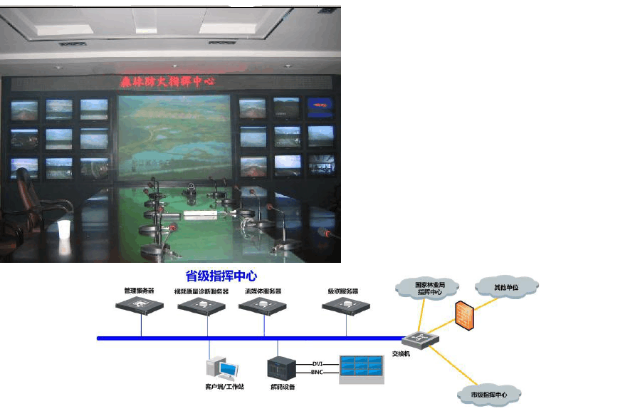 森林防火監(jiān)控系統(tǒng)是集硬件、軟件、網(wǎng)絡(luò)于一體的聯(lián)網(wǎng)系統(tǒng),以森林防火平臺(tái)軟件為核心,在指揮中心能夠?qū)崿F(xiàn)對(duì)各個(gè)林區(qū)防火監(jiān)控系統(tǒng)的全方位管理。