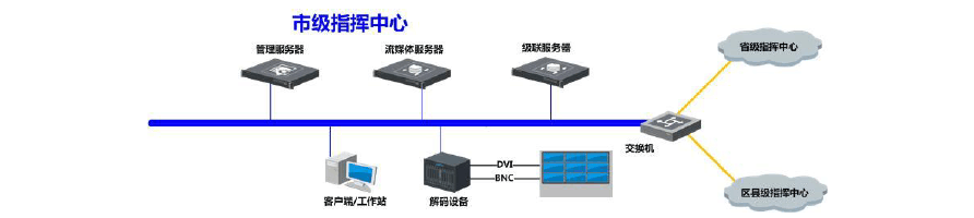 市級(jí)指揮中心可接收下屬林區(qū)上報(bào)的視音頻及環(huán)境信息,同時(shí)可以滿足用戶視頻信息查看、林區(qū)設(shè)備控制的需求。