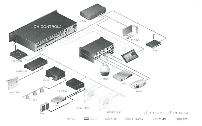 通過集中控制系統(tǒng)來控制投影機、RGB矩陣、音視頻矩陣、音響系統(tǒng)、視頻切換控制下等所有設(shè)備的電源開關(guān),等離子等VGA信號切換以及DVD、攝像機等各視頻信號切換??赏ㄟ^單鍵實現(xiàn)多種功能同時動作,可以同時輸入多路信號及輸出多路不同信號,滿足視頻會議及匯報工作需要。