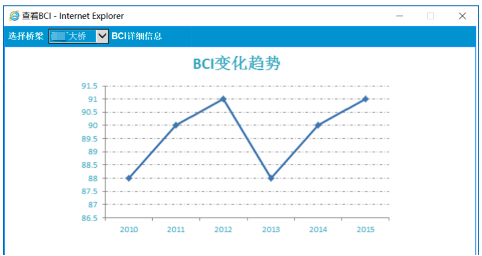 系統(tǒng)具有提供橋梁信息檔案,查看每個(gè)橋梁的全部信息的功能。提供的信息包括橋梁的靜態(tài)信息和橋梁的動(dòng)態(tài)信息。